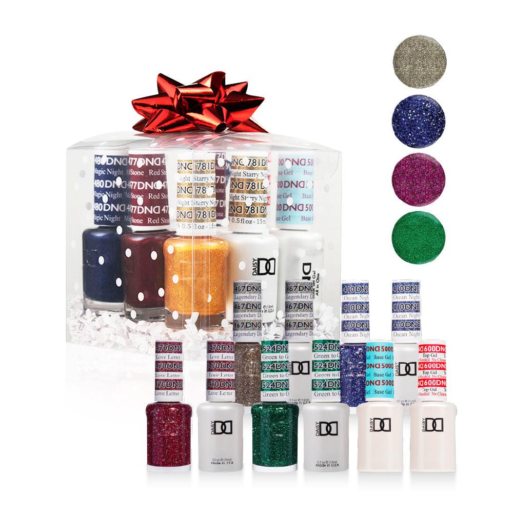 DND Holiday Gift Bundle: 4 Gel & Lacquer, 1 Base Gel, 1 Top Gel - 467, 410, 470, 524