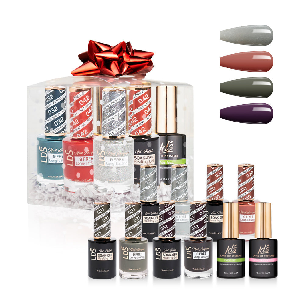 LAVIS Holiday Gift Bundle: 4 Gel & Lacquer, 1 Base Gel, 1 Top Gel - 079, 053, 056, 012