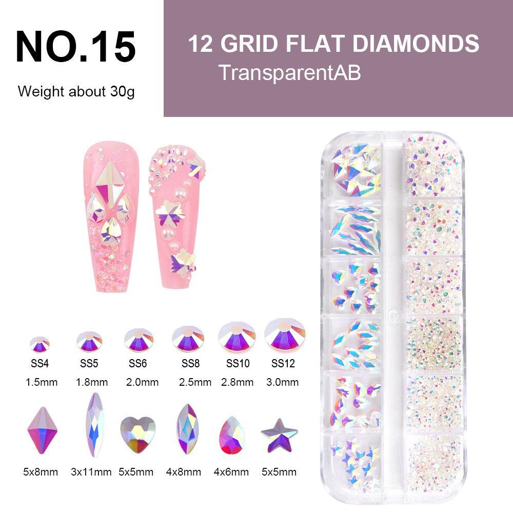 12 Grids Flat Diamonds Rhinestones #15 Transparent AB