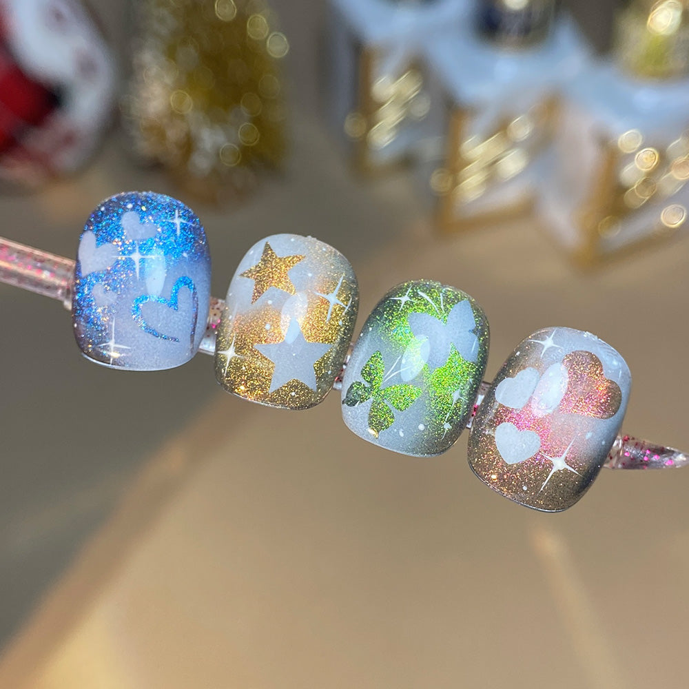 - Use the sticker tweezers, remove the stickers, and use the sculpture pen to press the nail sticker on the nail.