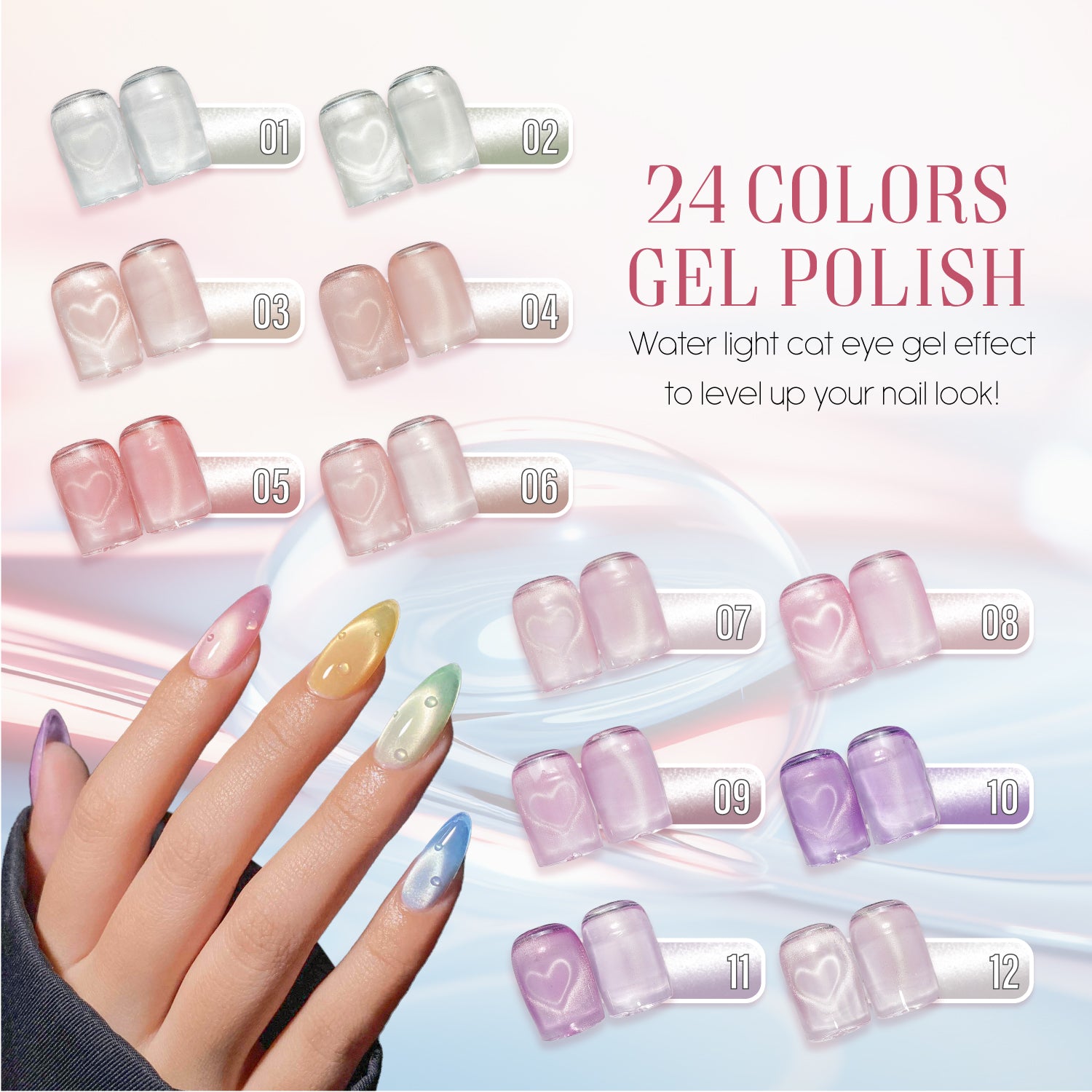 Immerse your nails in the serene beauty of a morning mist with the Morning Dewdrop C09 Water Light Cat Eye Collection. This enchanting collection captures the delicate shimmer of sunlight dancing on water droplets, creating a luminous, pastel-hued cat eye effect that evokes the tranquility of dawn.