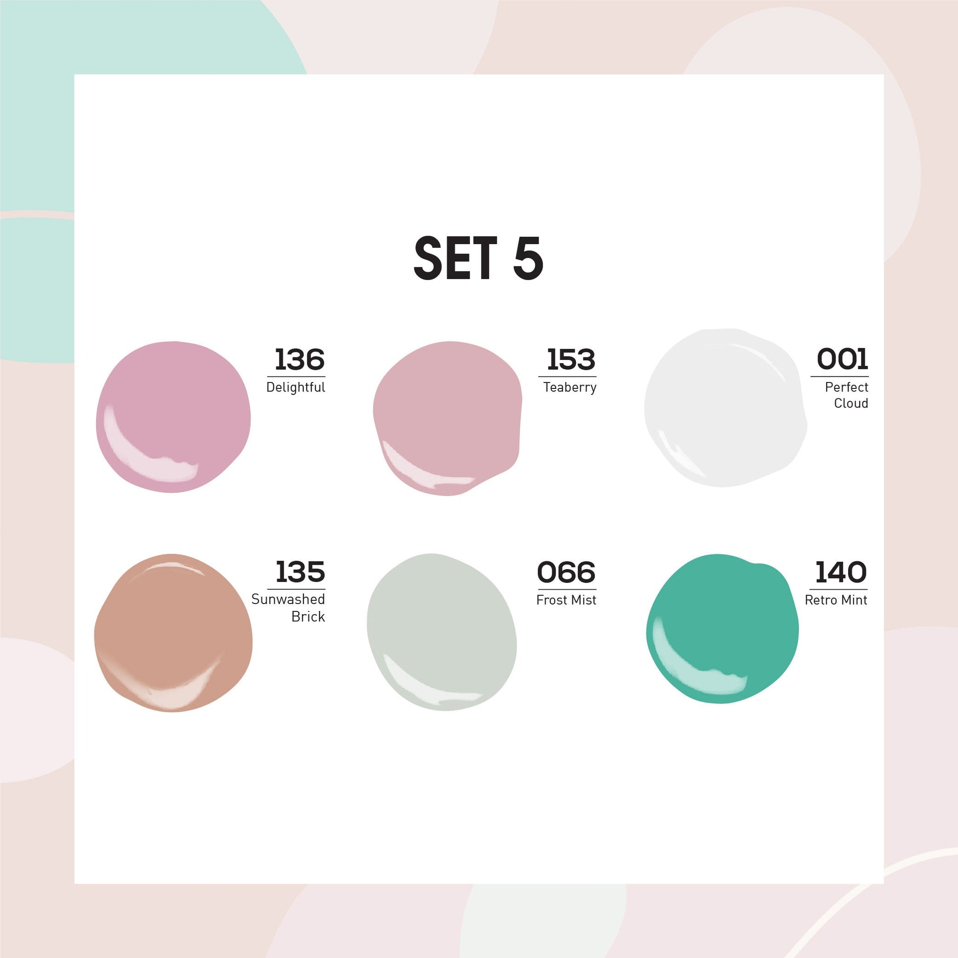 Lavis Gel Color Set 5 (6 colors): 136; 153; 001; 135; 066; 140